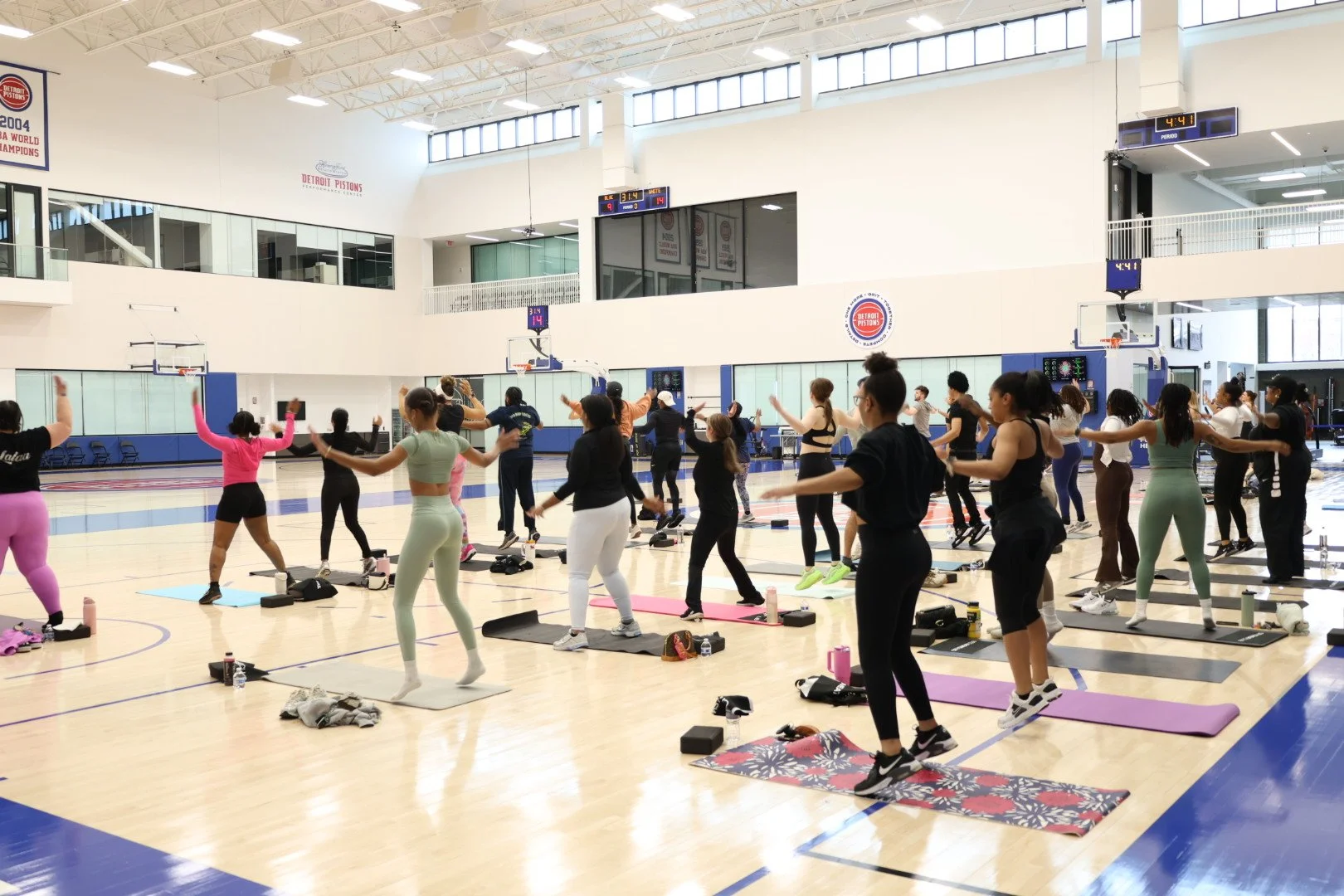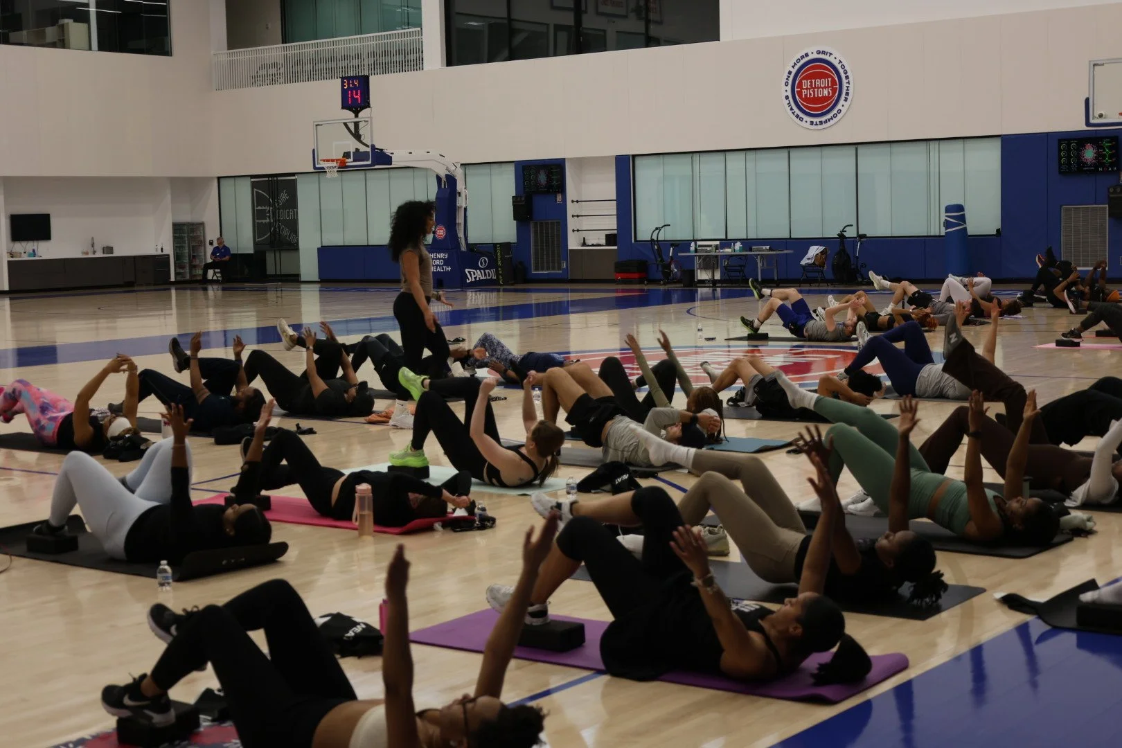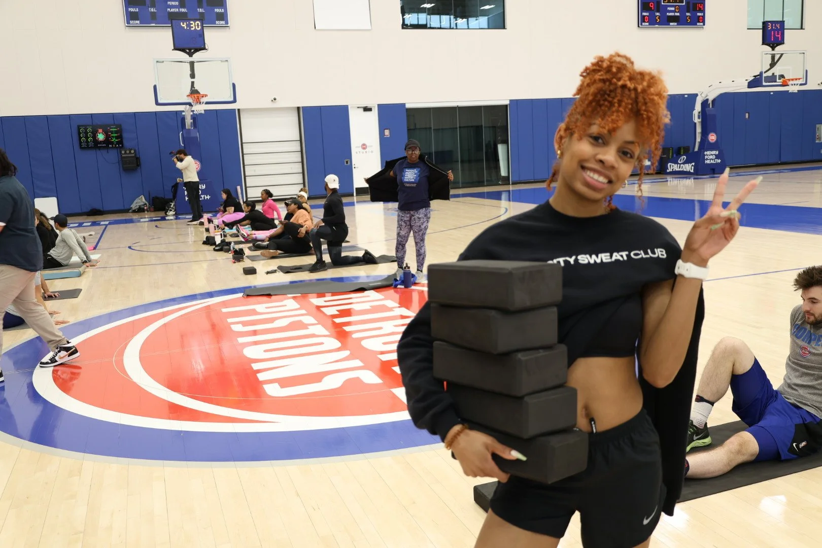 SWEAT On the Court. Our SWEAT story started here—on the court of the Henry Ford Pistons Performance Center. A 45-minute, full-body workout led with Pistons DJ Hi-Def Stef on the sound. We invested in this experience because access should never be a barrier. For the community, the class was free and the impact was priceless. It was an honor to lead community in a historic movement in celebration of Women’s History Month.