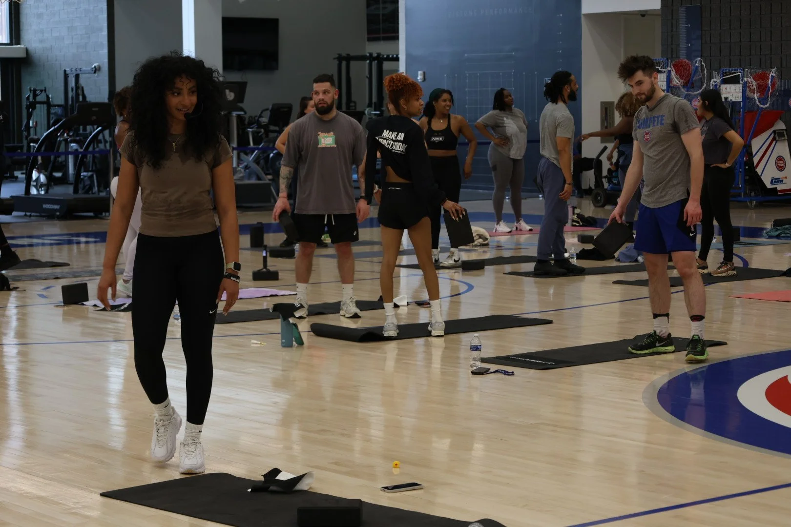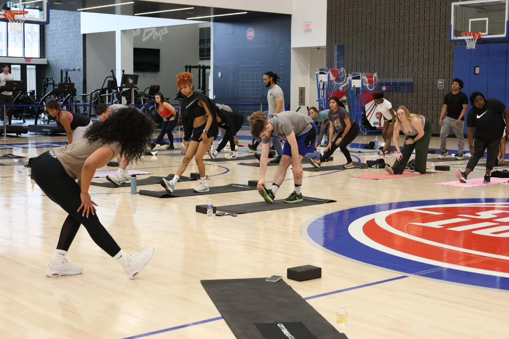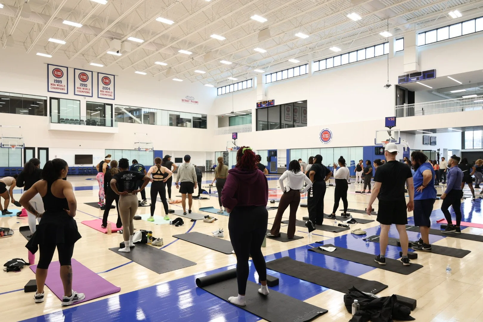 SWEAT On the Court. Our SWEAT story started here—on the court of the Henry Ford Pistons Performance Center. A 45-minute, full-body workout led with Pistons DJ Hi-Def Stef on the sound. We invested in this experience because access should never be a barrier. For the community, the class was free and the impact was priceless. It was an honor to lead community in a historic movement in celebration of Women’s History Month.